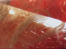 蚕から糸を採るのではなく、シルクフィルムを作ってしまう新潟朝日農協の試みも、蚕が想像以上に優れたクラフトマンであることを教えている。蚕が繭を作る時角度を少しずつ変えていくと、平面に糸を吹き出して紙状の物になり、工芸材料になる。しかし繭が紫外線をカットする機能を持っていることは、もっと本質的な能力である。繭に紫外線を照射してもなかの蛹はその影響を受けないが、繭を剥がして紫外線を当てると、成虫にはなるが、紫外線の障害を無惨に受けてしまうことは、写真の示す通りである。このように蚕は紫外線をカットする機能を持っている。したがって蚕から採るシルクも、当然にその性質を継承することになる。このうち家蚕のシルクは、日焼けはするが、癌化する危険のある部分はカットする。野蚕は癌化と日焼けの双方をカットする。津村のコレクションは、シルク・ポリエステル交織を塩化カルシウムで溶かしたり、蚕が平面に繭を作ったりする実験をアパレルデザインのなかに例示したものだったのである。このように優れた機能をもつ蚕のなかで、われわれ人類が利用しているのは家蚕と若干の野蚕に過ぎない。しかし10万種あるというこの昆虫が、他にどのような恩恵を人類に与えてくれるのかという研究は、まだ始まったばかりなのだ。たとえばアフリカ、ウガンダのクリキュラというような巨大種は、一体どんな恩恵を人類にもたらしてくれるのだろうか。このような研究は、豊かな自然のなかにある発展途上国の現場における研究と、その高度利用を開発する先進国の努力という、地球的な規模の協力関係によって推進されていくのだろう。虫が好かないという表現があるが、虫と人間が新しい友情で結ばれる日が来るかどうかに、新世紀、新ミレニアムの命運がかかっているようなのだ。シルクはノスタルジーであるだけではなく、途方もない遠くを展望する未来学でもあるのだ。(toppageへ)