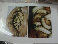 蚕の紫外線汚染(左上だけが繭で保護されていた) ウガンダの巨大繭・クリキュラ